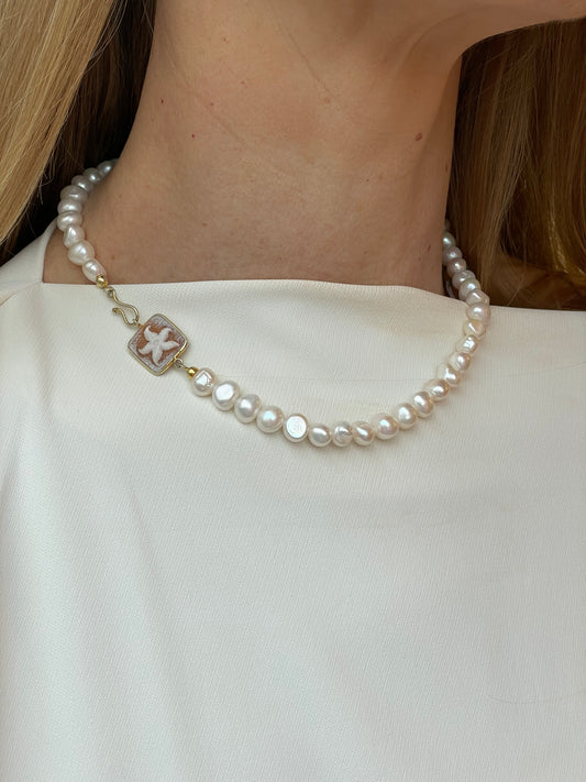 Starfish Cameo & Freshwater Pearl Necklace 8-9mm | 45cm