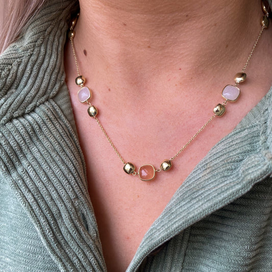 9ct Gold Moonstone Puffed Necklace