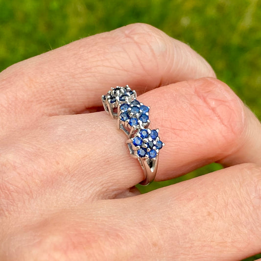 9ct White Gold Sapphire Floral Trilogy Ring