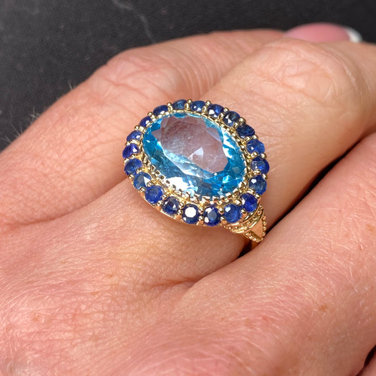 9ct Gold Blue Topaz & Sapphire Ring