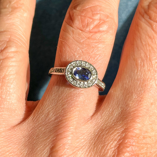 9ct White Gold Tanzanite & Diamond Ring