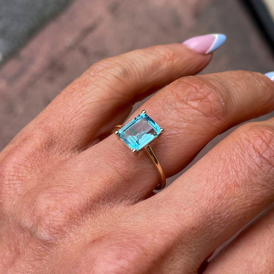 Sold out9ct Gold Blue Topaz Solitaire Ring