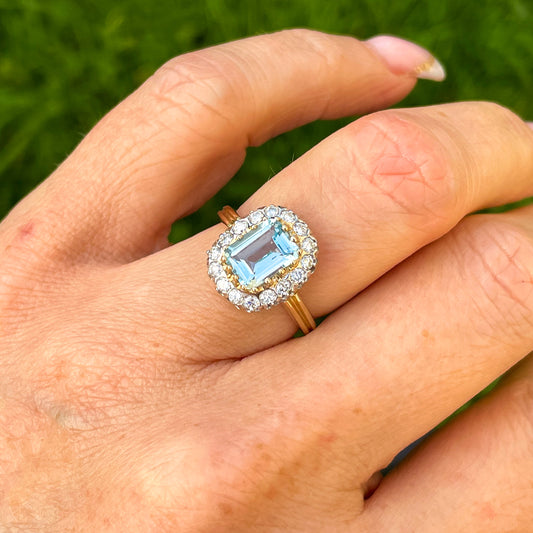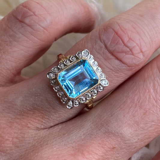 9ct Gold Blue Topaz & Diamond Cocktail Ring
