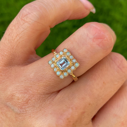 Sold out9ct Gold Blue Topaz & Opal Ring