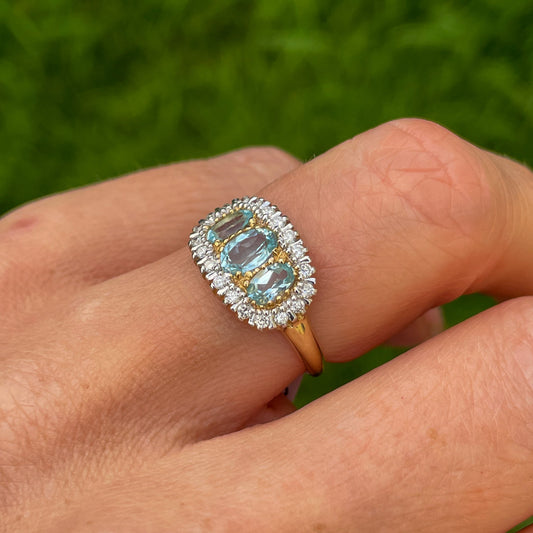 9ct Gold Blue Topaz & Diamond Trilogy Ring