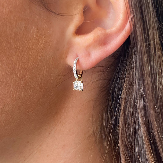 9ct Gold Charming Huggie Hoop Earrings | CZ Cushion