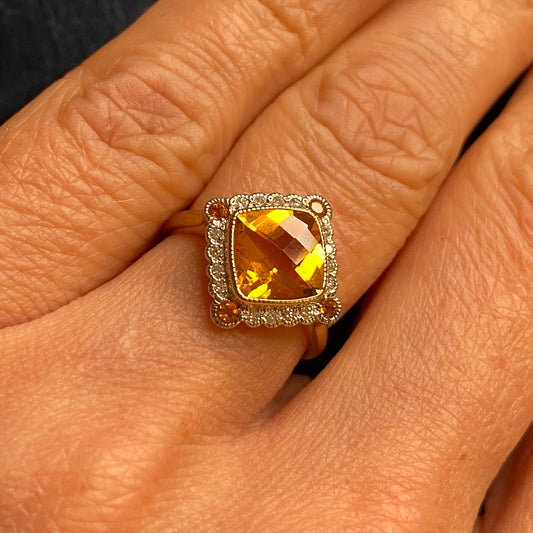 Sold out9ct Gold Citrine & Diamond Ring