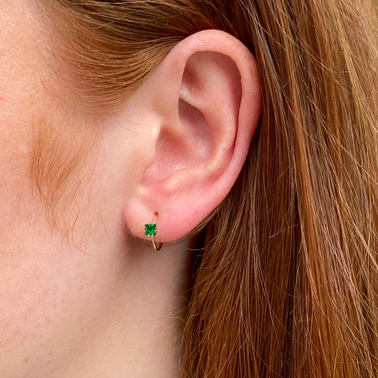 9ct Gold 10mm Sleeper Earrings | Green CZ Charm