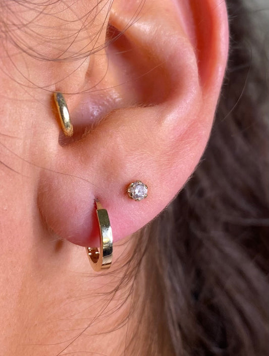 9ct Gold 11mm Huggie Hoop Earrings | White CZ