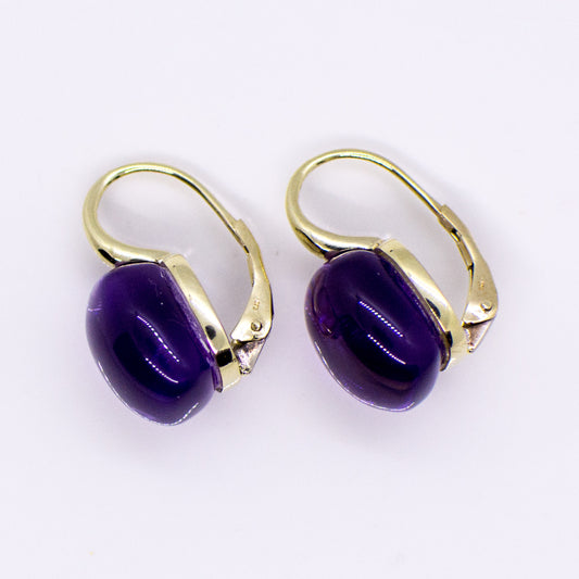 9ct Gold Amethyst & CZ Oval Stud Earrings