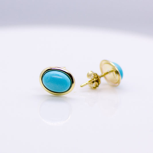 9ct Gold Oval Turquoise Stud Earrings