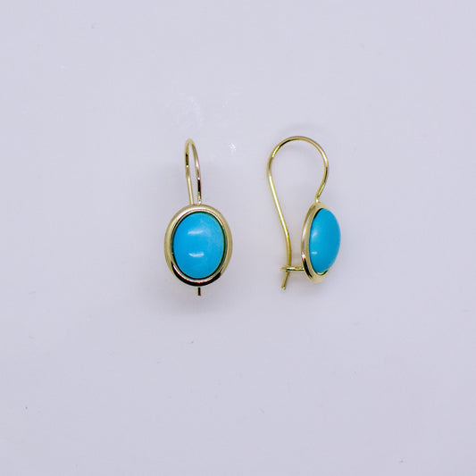 9ct Gold Oval Turquoise Drop Earrings