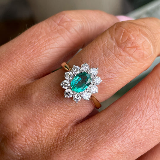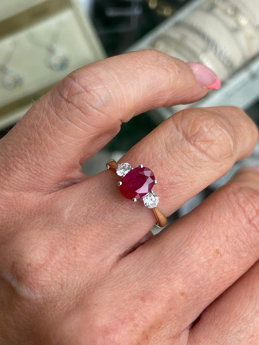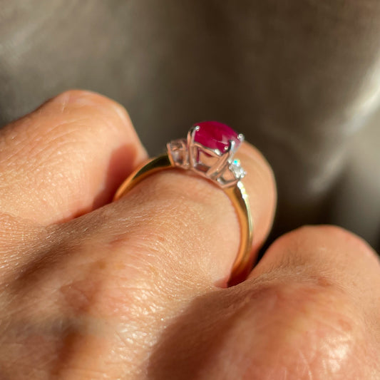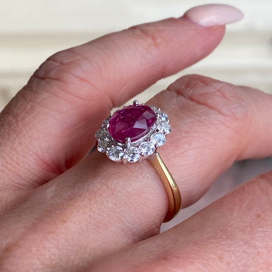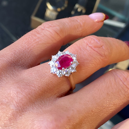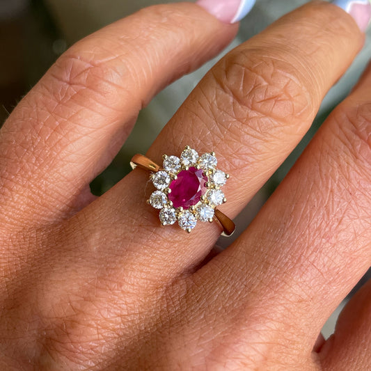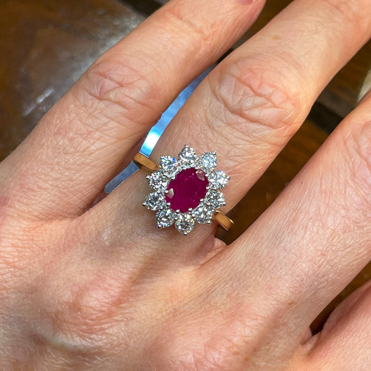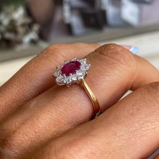 18ct Gold Ruby & Diamond Oval Cluster Ring