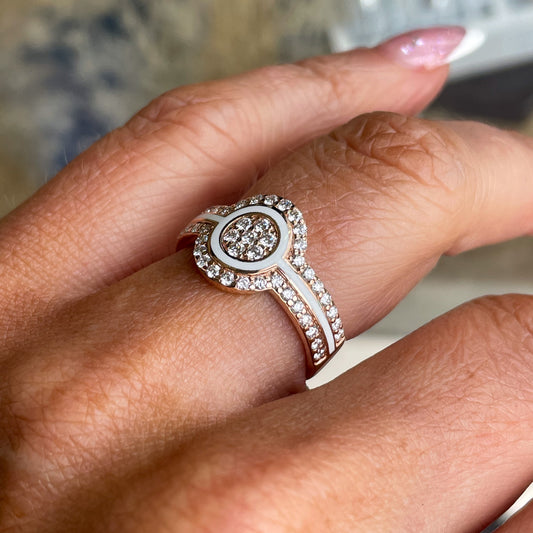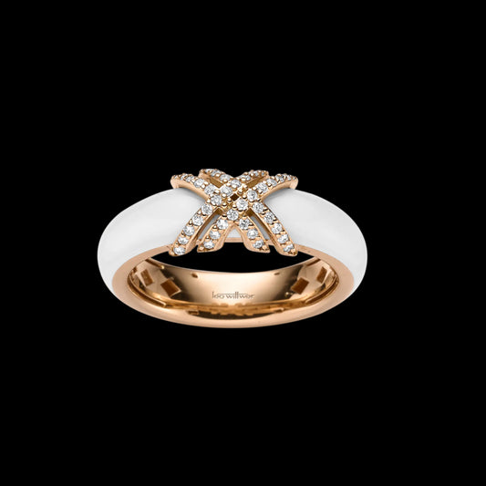 18ct Rose Gold Diamond Crosses & Enamel Ring