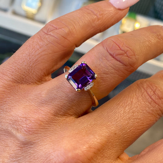9ct Gold Amethyst & Diamond Ring