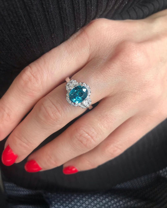 18ct White Gold Blue Zircon & Diamond Ring