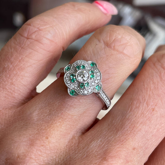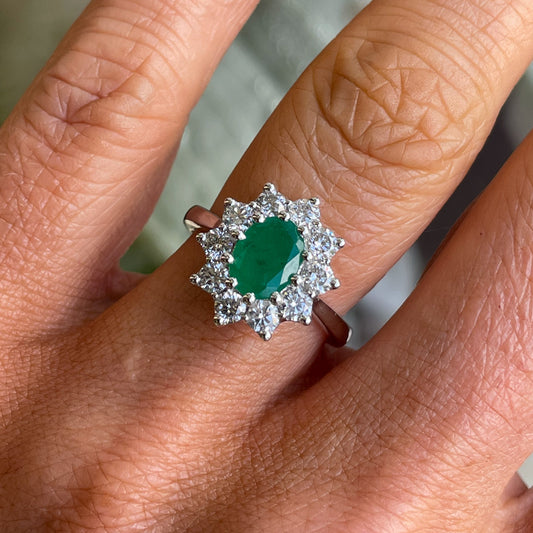 18ct White Gold Emerald & Diamond Ring