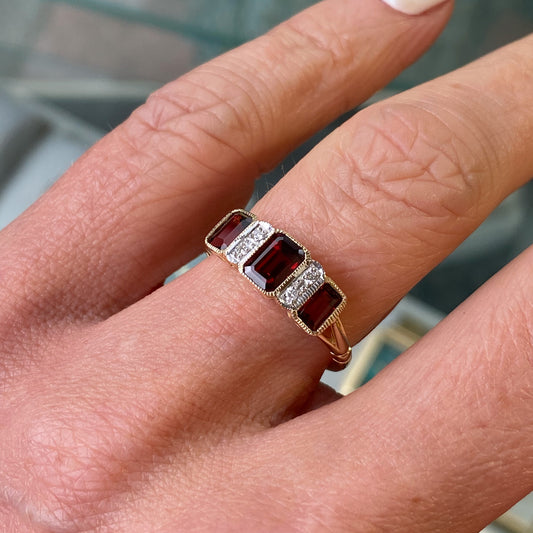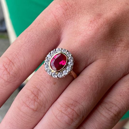 9ct Gold Created Ruby & CZ Vintage Style Ring