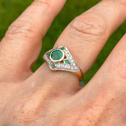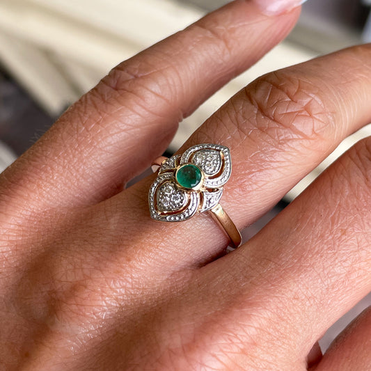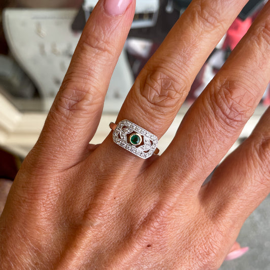 9ct Gold Created Sapphire & CZ Vintage Style Ring