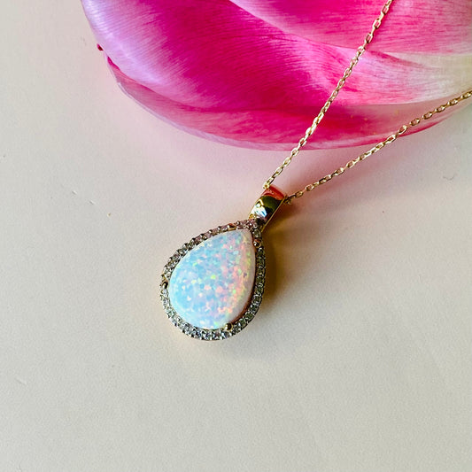 9ct Gold CZ Pear Shaped Opalique Necklace