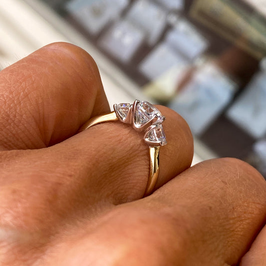 9ct Gold Created Sapphire & CZ Trilogy Ring