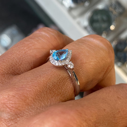 9ct White Gold Blue Topaz & Diamond Ring