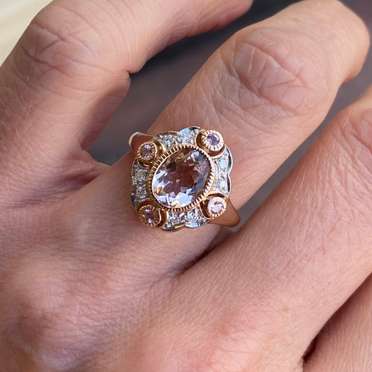 9ct Rose Gold Morganite & Diamond Ring
