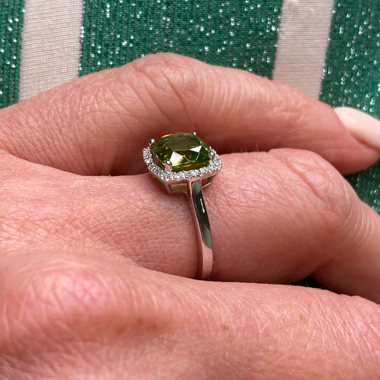 9ct White Gold Peridot & Diamond Ring
