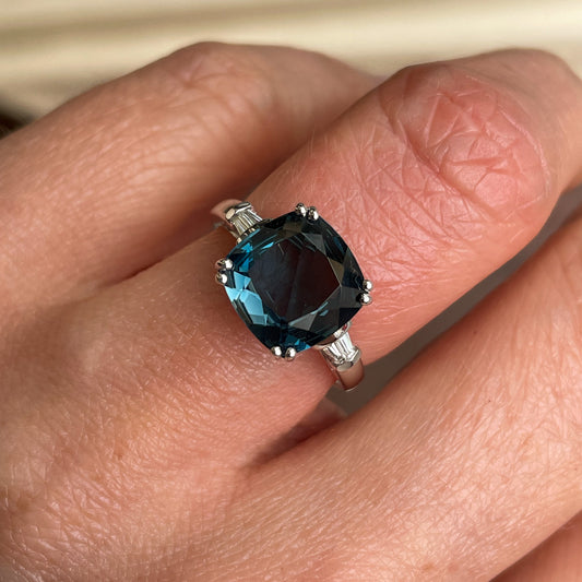 9ct White Gold London Blue Topaz & Diamond Ring