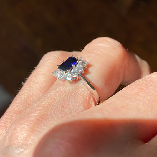 9ct White Gold Created Sapphire & CZ Ring