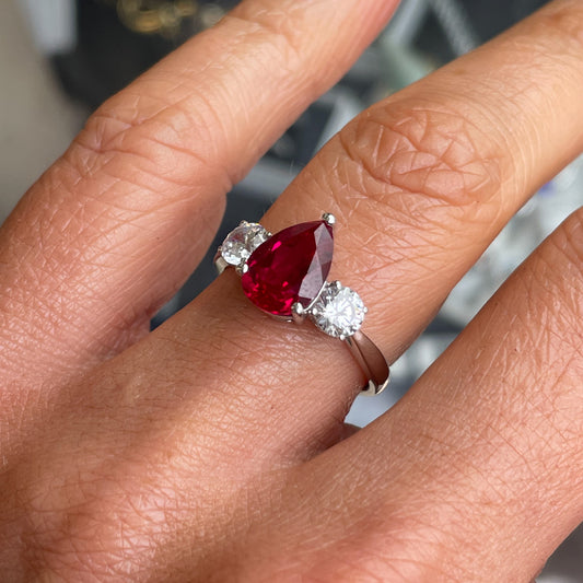 9ct White Gold Created Ruby & CZ Ring