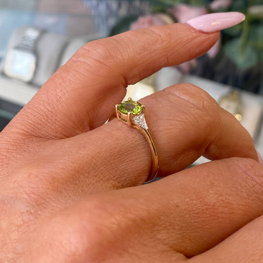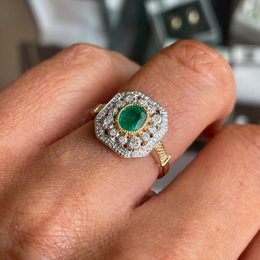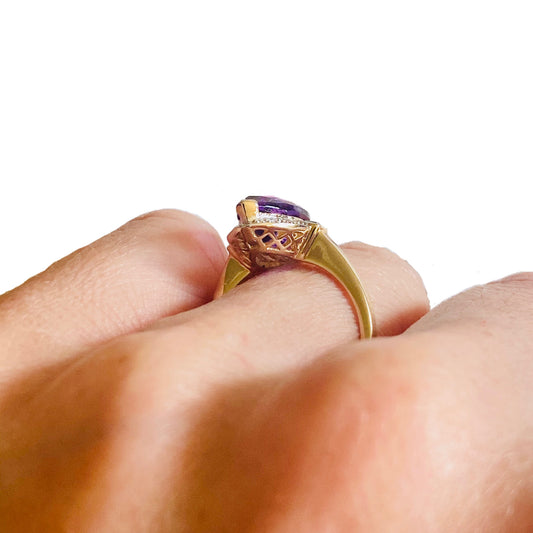 9ct Yellow Gold Amethyst, Emerald & Diamond Ring