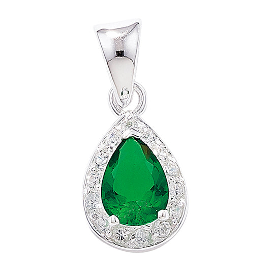 Silver Green & CZ Pear Halo Pendant Necklace