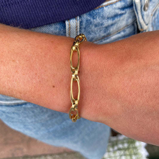 9ct Gold Elongated Oval Link Two Tone Bracelet