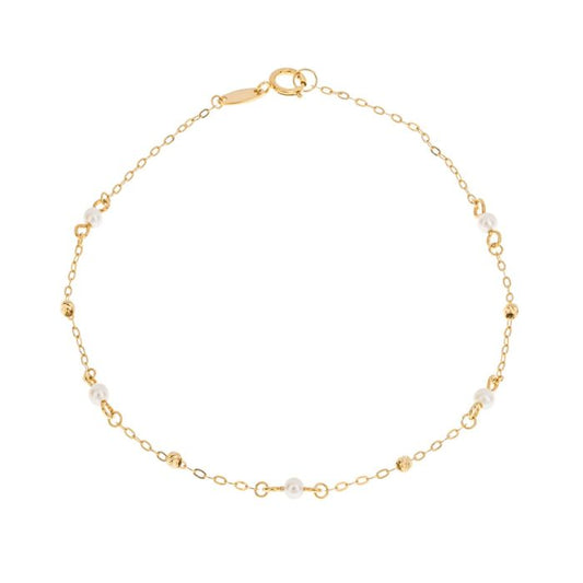 9ct Gold Freshwater Pearl & Diamond Cut Bead Station Bracelet