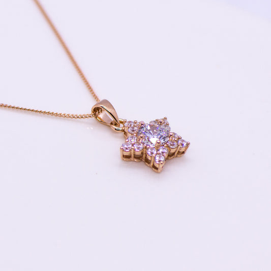 Rose Silver Sparkling CZ Star Necklace