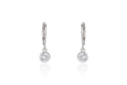 Silver 5mm CZ Bezel Drop Earrings | German Wires