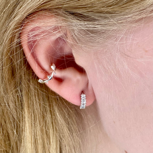 Silver 10mm Baguette CZ Huggie Hoop Earrings