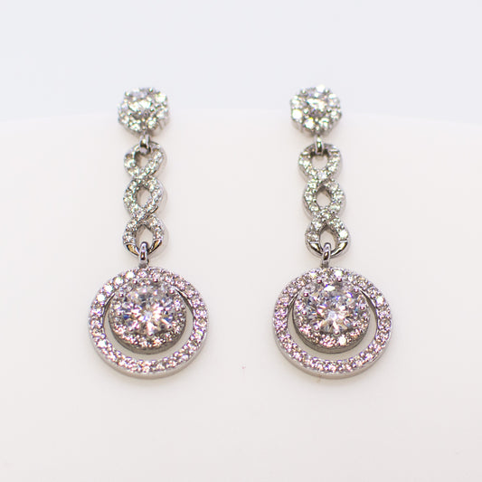 Silver CZ Hoop Earrings with Bezel Set CZ Charms