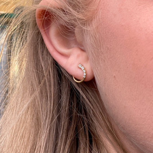 9ct Gold CZ Curved Huggie Hoop Earrings
