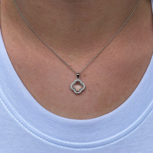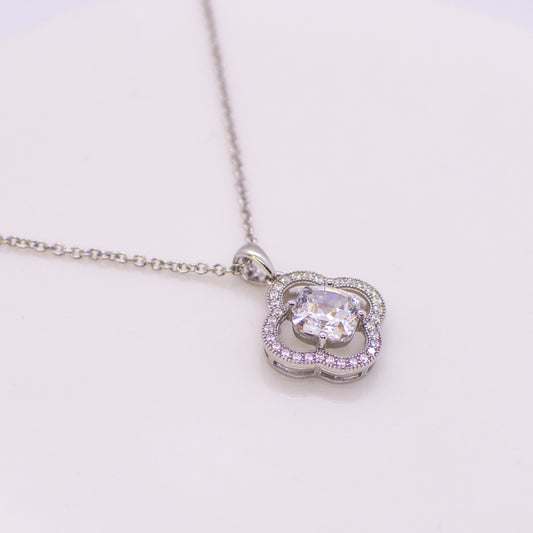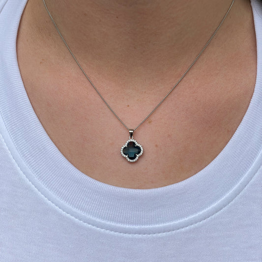 Silver CZ Quatrefoil Drop Earring & Necklace Set | London Blue