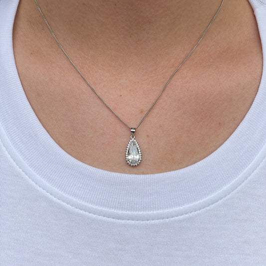 Silver CZ Pear Halo Earring & Necklace Set | Mystic Topaz