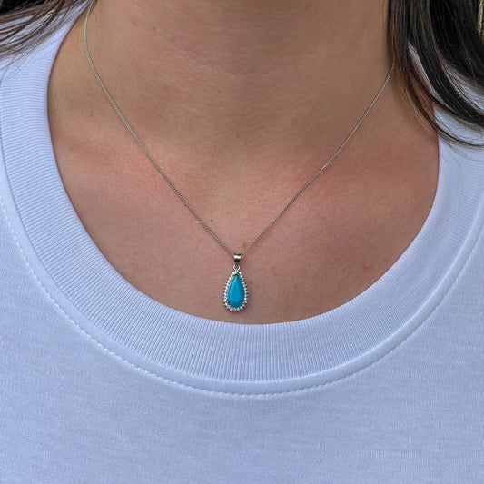 Silver CZ Pear Halo Earring & Necklace Set | Turquoise