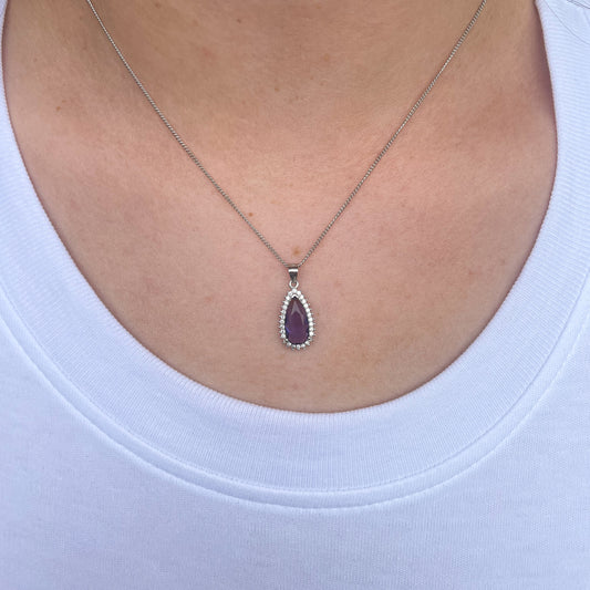 Silver CZ Pear Halo Earring & Necklace Set | Amethyst