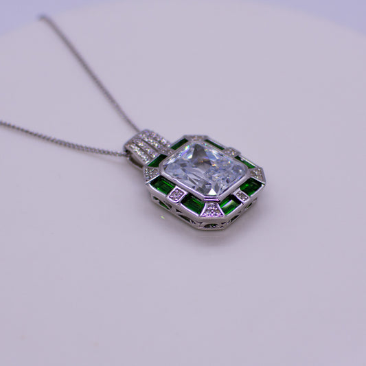 Silver CZ Rectangular Pendant Necklace - Created Emerald