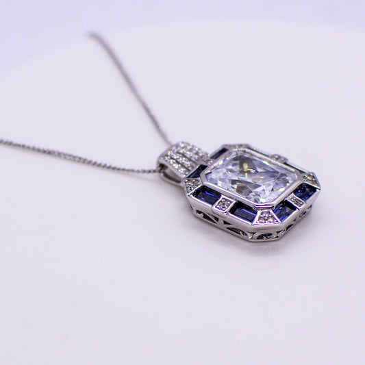 Silver CZ Rectangular Pendant Necklace - Created Tanzanite