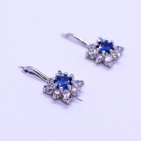 Silver CZ Square Halo Drop Earrings - Created Sapphire
