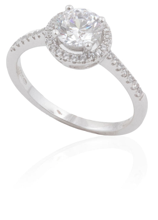 Sold outSilver CZ Solitaire Halo Ring
