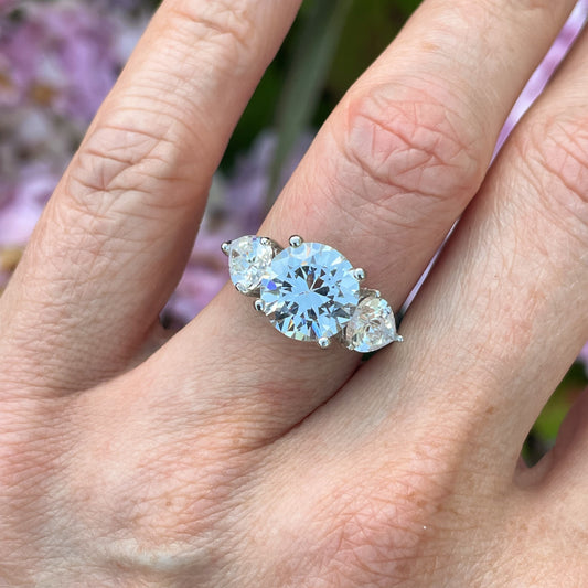 Silver CZ Solitaire Ring | Pear CZ Shoulders