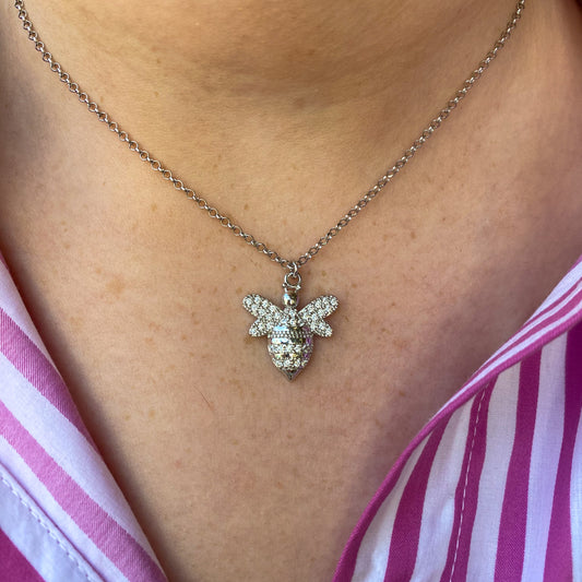 SUNSHINE Large CZ Bee Necklace - Silver